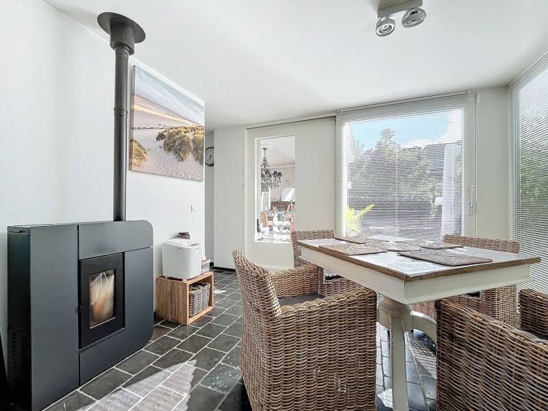 Eettafel voor 4-6 personen, Nespresso koffiezetapparaat (cups zijn verkrijgbaar), microgolfoven, cd-speler, groot Smeg kookvuur + oven, waterkoker, tooster, grote koelkast & diepvries, overal zicht op en toegang tot de terrassen en tuin … Onze keukenkasten zijn gevuld met veel servies, glazen, kookgerief en -accessoires. Elke foodie zal hier zeer tevreden mee zijn !